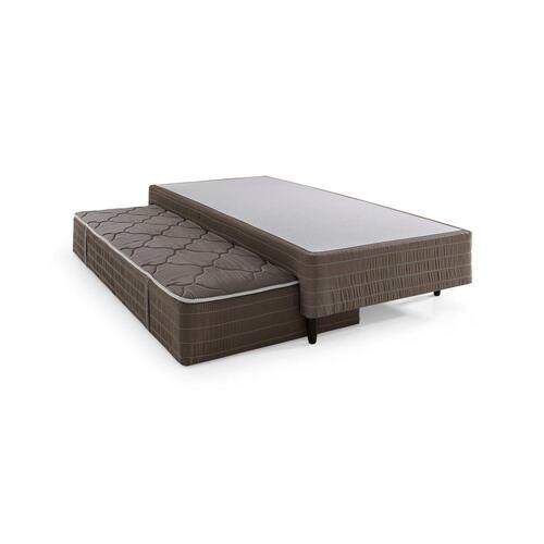 Perfeito pra quem precisa de uma cama versátil e moderna, a base Geneva possui um colchão auxiliar com Molas Bonnel de 10cm. Sua estrutura é feita de madeira de Eucalipto classificada Oriunda de Reflorestamento e secada em estufa antes de ser beneficiada. A parte superior do Box é composta por chapa Compensada Multilaminada de 4mm. O colchão auxiliar conta com feltro resinado, Espuma D28, Laterais e Cabeceiras com espuma de alta densidade. Possui também ferragem com pintura epoxi, um sistema que permite elevar o colchão auxiliar na altura do colchão superior. Acompanha Cama Auxiliar: Sim Ambiente Principal: Quarto Cantoneiras: Não Cor do Produto: Marrom Itens Inclusos: 1 Base box com colchão auxiliar. Material da Estrutura: Madeira de Eucalipto Material dos Pés: Plástico Necessita Montagem: Não Peso: 39 Possui Baú: Não Recomendações de Uso, Manutenção e Limpeza: Recomenda-se a utilização de pano seco. Revestimento da Base Box: Korino Tamanho da Cama Auxiliar: 88 x 186 x 23 Tamanho do Produto: Solteiro Ean: 7909903457177
