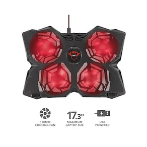 Máx. de Elevação: 4,5cm Ventilador Incluído: sim, 4x Altura do Produto Principal (em mm): 406mm Largura do Produto Principal (em mm): 286mm Profundidade do Produto Principal (em mm): 30mm Peso Total: 752 g CONECTIVIDADE Porta USB Extra: não Cabos Incluídos: separados, 60 cm RECURSOS Dobrável: não Antiderrapante: sim Recursos Especiais: Luzes de jogo em ventiladores. Botões: 1 controlador de ventilador superior, 1 controlador de ventilador inferior ILUMINAÇÃO Luzes: sim LED Cores: vermelho CARACTERÍSTICAS