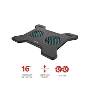Laptop grande? Não há problema. Com espaço suficiente para todos os laptops de até 16 polegadas, este suporte de resfriamento fornece suporte confiável e estável para o seu dispositivo, independentemente do tamanho. Assim como um bom colega, este suporte de resfriamento tem as costas de você e do seu laptop! A todo vapor