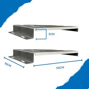 Ficha Técnica: Marca: JVG Metalúrgica Tipo: Base Fixa Para Motor Aplicação: Portões Deslizantes Material: Aço Espessura: 30mm Dimensão 30mm: 3cm x 30cm x 16cm (AxLxC) Acabamento: Pintura Eletrostática Cor: Zincado