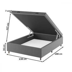 - Tipo de Enchimento: Base Box revestida com tecido, tampo em TNT e matelassê com 5mm de espuma