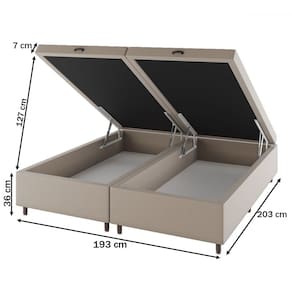 - Tipo de Enchimento: Base Box revestida com tecido, tampo em TNT e matelassê com 5mm de espuma