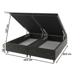 - Tipo de Enchimento: Base Box revestida com tecido, tampo em TNT e matelassê com 5mm de espuma