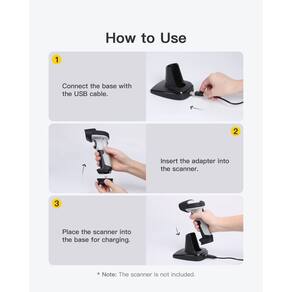 Inateck Base de carregamento para scanner de código de barras, fácil de usar, adequada para BCST-60, BCST-70, BCST-73, P6 e P7, scanner não incluído - Design exclusivo: esta base é feita sob medida para scanners de código de barras Inateck aplicáveis para Inateck BCST-60, BCST-70, BCST-73, P6 e P7 - Base 2 em 1: não apenas funciona como um suporte de scanner para operação portátil e maior eficiência de trabalho, mas também funciona como um carregador quando um scanner fica nele - Fácil de usar: montagem fácil em 3 etapas, plug and play - Design antiderrapante: as 4 almofadas de borracha antiderrapantes na parte inferior da base garantem o funcionamento normal em uso, evitando que o scanner oscile - O que você recebe: uma base, um adaptador, um cabo USB, um guia do usuário