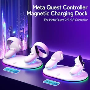 - Carregamento seguro e rápido: para controles Meta Quest 3S/3/2, totalmente carregados dentro de 3,5 horas. O suporte de carregamento para controles Meta Quest 3S/3/2 oferece proteção contra sobrecarga, sobrecarga e sobrecorrente para garantir um carregamento seguro e confiável.