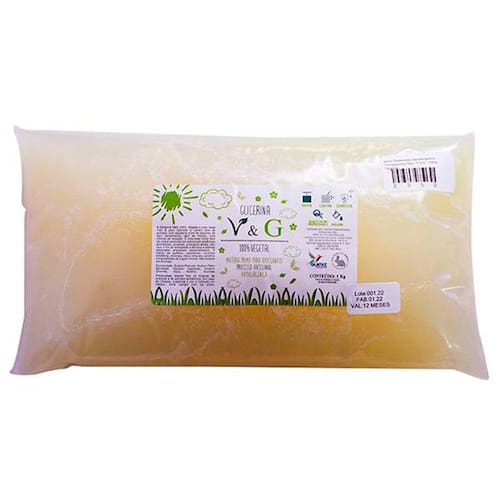 Glicerina V & G 100 % Vegetal é uma base melt & pour (derreter e verter) livre de sulfatos, com excelente nível de espuma, de fácil derretimento, fácil de moldar, com mínimo de retração.