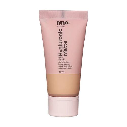 Base Líquida Hyaluronic Matte Cor 03 Nina Make Up - 30ml Descrição do produto: A Base líquida Hyaluronic Matte Nina Makeup é um produto de maquiagem formulado para fornecer cobertura de média a alta e ao mesmo tempo fornecer benefícios hidratantes e de cuidados com a pele. O ácido hialurônico é um ingrediente conhecido por suas propriedades hidratantes e de preenchimento, que ajudam a manter a pele hidratada, suave e com aparência jovem.