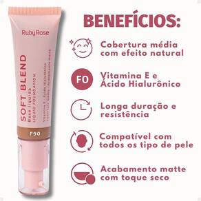 Base Líquida Ruby Rose Soft Blend F90 Média Cobertura 30g Hb-M301-9