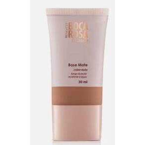 A Base Mate Boca Rosa Beauty by Payot é uma base de alta cobertura que proporciona um acabamento mate sem deixar a pele ressecada ou craquelada. Desliza facilmente na pele e proporciona uma cobertura perfeita. É de longa duração e resistente à água. São 9 cores subdividas em 3 tons: claro, médio e escuro. Principais Benefícios: Proporciona alta cobertura. Espalha facilmente promovendo o efeito desejado. Não craquela. Longa Duração Resistência à água Modo de uso: Após higienização da pele e primer lágrima rose gold, aplicar a base de maneira uniforme usando um pincel, esponja ou os dedos. Indicação: Para todos os tipos de pele. Produto hipoalergênico e dermatologicamente testado. Marca: Poyat