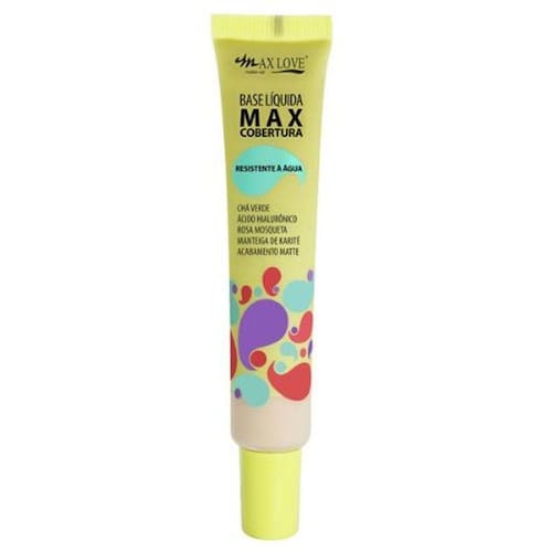 A Base Líquida Matte da Max Love tem um acabamento matte bem pigmentado. Pode ser usada em todos os tipos de pele. Feito para peles no tom médio e escuro, buscando uma excelente cobertura matte. Ele é resistente a água e ainda conta com os benefícios do Chá verde, da manteiga de karite, do ácido hialuronico e rosa mosqueta. A Base Liquida Matte da Max Love e de alta cobertura, possui e secagem rápida. Contém vitamina E e colágeno. Conta ainda com uma ação umectante e hidratante.