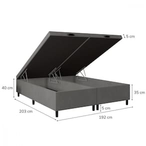 Base Para Cama Box King Com Baú 192x203x35 Cinza Portobel Cinza Transforme seu quarto com a cama box king com bau, a combinacao perfeita de conforto e funcionalidade. Este modelo elegante oferece um design moderno e clean, alem de um amplo espaco de armazenamento para organizar suas roupas de cama, travesseiros e outros itens. Nao perca a oportunidade de otimizar seu espaco e elevar a decoracao do seu ambiente. Adquira ja a sua cama box com bau e aproveite o melhor do design e conforto! Dimensoes: Altura (com pes): 40 cm | Largura: 192 cm | Comprimento: 203 cm