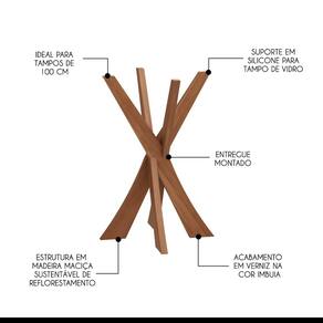 CARACTERÍSTICAS TÉCNICAS: - Produzido em Madeira Maciça Sustentável - Acabamento em Verniz na cor Imbuia - Possui Suporte para Vidro em Silicone - Ideal para Tampos de 100 cm - Produto Enviado Montado
