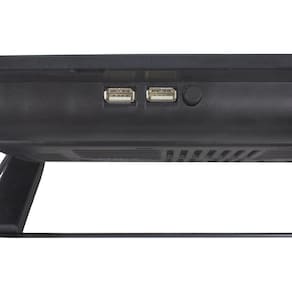 Projetado para conferir um excelente desempenho em dissipação de calor, a Base Para Notebook Evus BPN-03 Twins possui 02 ventiladores (fans) de 120mm de diâmetro cada, com baixo nível de ruídos e iluminação em LED na cor azul. Seu design é clean e a estrutura é leve, fina e fácil de transportar. Possui pés com borrachas antiderrapantes para aumentar estabilidade, contando também com haste de inclinação em 3 níveis diferentes, gerando maior ergonomia e conforto no uso contínuo e é compatível com notebooks de até 15 polegadas. A superfície em malha de metal favorece a saída do fluxo de ar, evitando que seu notebook trabalhe com temperaturas muito elevadas durante o uso. Pode ser utilizado em superfícies planas e até mesmo no colo ou em cima da cama com segurança, pois possui travas de apoio emborrachadas e ajustáveis para acomodar o seu notebook. A Base Para Notebook Evus BPN-03 Twins utiliza uma conexão USB como alimentação, e para não desperdiçar uma das portas USB de seu notebook, a Base Twins disponibiliza um cabo USB x USB e 1 porta USB extra, além de um botão para ligar/desligar a ventilação na face traseira da base. * Imagens meramente ilustrativas. Notebook não incluso.