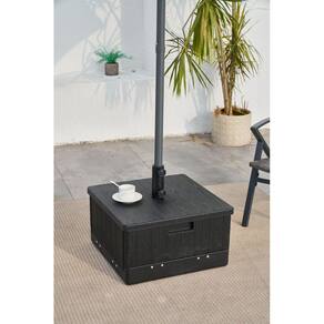 "Adicione um toque de elegancia e funcionalidade ao seu espaco ao ar livre com a Base para Ombrelone com Mesa Dubla 53x53x30 cm. Esta peca robusta, feita de Pead de alta qualidade, e projetada para resistir a todas as condicoes climaticas, garantindo durabilidade e longevidade. Com um acabamento na cor preta, esta base de guarda-chuva com mesa se adapta a qualquer decoracao externa, proporcionando um charme discreto e sofisticado.