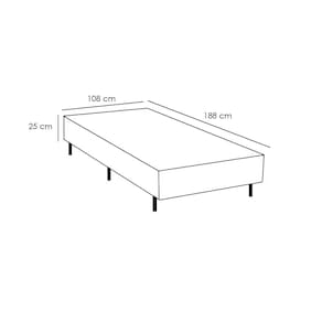 Base Solteirão Cama Box 25x108x188 Courino Agregue muito mais elegância e estilo ao seu quarto com esta magnífica Base Solteirão Cama Box 25x108x188 Courino Preto! Ideal para colchões com 108cm de Largura, ela fará com que suas noites de sono sejam relaxantes, além de mais tranquilas e revigorantes. Além de ótima opção para mudar o visual do quarto e transformar o seu dia a dia, a Base Solteirão Cama Box 25x108x188 Courino é confeccionada com materiais de altíssima qualidade!\nMedidas\nAltura 25 cm\nComprimento 188 cm\nLargura 108 cm\nCaracterísticas\nModelo Base Solteirão Cama Box\nTipo do produto Base Box\nFabricante Alto Nível\nMaterial Madeira de Reflorestamento\nTamanho Solteirão\nProteção Antiácaro, Antimofo e Antialérgico\nPossui Pés 06\nTipo de Pés PVC Reforçado\nTipo de Colchão 108 cm de Largura\nGarantia 3 meses\nInformações Importantes\nObjetos decorativos que porventura apareçam na foto, não acompanham o produto. Não nos responsabilizamos pela montagem/instalação dos produtos.\nMontagens, desmontagens e instalações são responsabilidades do cliente. Indicamos que contrate uma empresa de montagem ou um montador de sua confiança.\nAlém disso, favor verificar se os pés e acessórios estão dentro do forro inferior do produto. Em suma, todas as informações divulgadas sobre o produto são de responsabilidade do Fabricante.\nAs cores do produto podem variar de acordo com o seu monitor, a iluminação do ambiente em que você está e até mesmo a sua percepção visual. Além da cor, pequenos detalhes e acabamentos podem não ficar evidentes na foto, por isso as imagens são meramente ilustrativas.