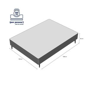 Base Sommier Camurça Bege Casal 138x188x23cm - 1051611837 - Ortobom Base Sommier Camurça Bege Casal 138x188x23 Base Sommier Camurça Bege Casal 138x188x23cm - 1051611837 - ORTOBOM Descrição: Base Sommier perfeito combinação com os Colchões Ortobom, indicado para 2 pessoas de até 150kg cada (além do peso do colchão), revestimento em Camurça, possui 36cm de altura (23cm da Base + 13cm dos pés). Toda sua estrutura é em madeira Eucalipto Domus com bactericida natural que evita proliferação de cupins, brocas e traças. Acompanha jogo de Pés. Possui tratamento e .