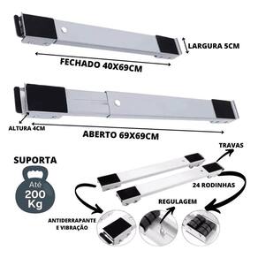 - Fácil de usar, ele é ajustável profundidade e largura e vai de 40cm até 69cm de tamanho. - Possui travas e quando precisar mover o eletrodoméstico de lugar é só destravar. - Aço Resistente e Reforçado para suportar qualquer tipo de móvel ou eletrodoméstico. - Fácil instalação. - Base Antiderrapante e Anti Vibração. - Ajuda proteger eletrodoméstico e móveis contra a água da limpeza, evitando ferrugem e estrago nas madeiras.