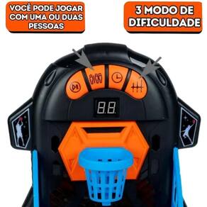 Transforme qualquer momento em uma partida emocionante com este incrível jogo de basquete Com luzes de led que deixam a brincadeira ainda mais divertida, ele pode ser jogado sozinho ou em dupla, trazendo competição e entretenimento para todas as idades. -luzes de led para um visual moderno e interativo. -modos para 1 ou 2 jogadores - jogue sozinho ou desafie amigos e família. -3 níveis de dificuldade para deixar o jogo ainda mais emocionante. -estimula a coordenação motora, concentração e raciocínio rápido. -perfeito para momentos de lazer em casa.