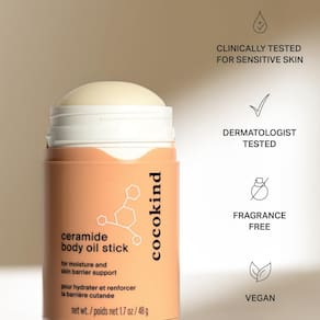 Este bastão de óleo corporal sem bagunça usa ceramidas, esqualano e karité para reabastecer a umidade e apoiar a barreira da pele do seu corpo. A fórmula leve desliza como um bálsamo e nutre como um óleo para deixar a pele macia e flexível. O aplicador em bastão facilita direcionar áreas secas e sedentas e manter a hidratação onde você mais precisar. Esta fórmula sem fragrância foi clinicamente testada para peles sensíveis.