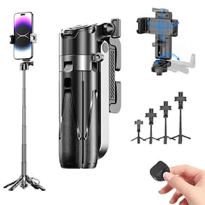 Este Bastão de Selfie Retrátil 360 para SmartPhones com Mini Tripé e Controle Remoto é confortável e ergonômico para fotografia e gravação de Vlog, transmissão streaming, selfies ou fotos de grupo, segura seu SmartPhone como uma câmera e reduz a trepidação ao tirar fotos ou gravar vídeos. Equipado com uma haste telescópica ajustável de 6 seções com uma faixa ajustável de 11.7cm a 41.5cm, você pode definir livremente a altura de acordo com suas necessidades e lidar perfeitamente com diferentes cenas. O Bastão de Selfie para Celular pesa apenas 137 gramas e tem apenas o tamanho de uma palma após dobrar e pode caber facilmente no seu bolso ou bolsa. Além disso, vem com um mosquetão para prendê-lo convenientemente à sua mochila, que é fácil de transportar e pronto para fotografar a qualquer hora, em qualquer lugar, conveniente e rápidoO Bastão de Mini Selfie Stick Retrátil 360 possui 4 modos de uso para atender a diferentes necessidades de fotografia. Modo SLR: pegada firme, trazendo a sensação de uma Câmera DSLR Profissional, fácil de operar com uma mão. Modo Bastão de Selfie: tire fotos de grupo facilmente. Modo Tripé: adequado para fotografia estática ou gravação de vídeo. Modo Suporte para Celular: fácil de assistir ou transmitir ao vivo. Seja para fotos de viagem ou selfies diárias, o Bastão para SmartPhones pode ajudá-lo a capturar facilmente momentos maravilhosos.Equipado com 2 interfaces de sapata fria para fixar microfones e luzes de preenchimento, o que é especialmente adequado para gravação de vídeo profissional e transmissão ao vivo. Seu Suporte para SmartPhones possui rotação de 360 e ajuste de ângulo de 225, garantindo que você possa ajustar facilmente o melhor ângulo de disparo, seja ele Vertical ou Horizontal, sempre tire uma foto perfeita.O Mini Tripé deste Bastão de Selfie Retrátil 360 para SmartPhones possui haste telescópica de liga de alumínio, sendo resistente garantem estabilidade e durabilidade e fornecem excelente suporte mesmo em ambientes diferentes. O design de 4 pernas adiciona estabilidade extra para garantir que ele possa ficar em pé, mesmo no gramado, para evitar tremer durante as filmagens. Muito fácil de usar, basta pressionar o botão na parte inferior para desbloquear as 4 pernas do tripéEquipado com um Controle Remoto sem fio via Bluetooth 5.2 se com alcance de 10 metros, o Controle Remoto tem 2 posições fixas para se adaptar a diferentes cenários de uso. Operação simples, fácil de controlar a filmagem com uma mão, sem ajuda adicional, capture cada momento bonito a qualquer momento.Suporta a maioria dos SmartPhones  Largura de 6cm a 8.5cm