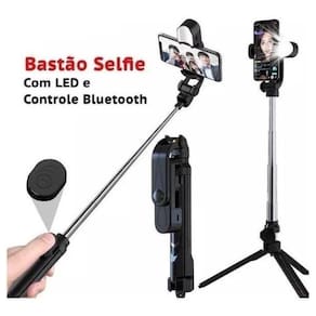 Bastão Pau Selfie Tripe Luz Led Bluetooth Retratil Celular