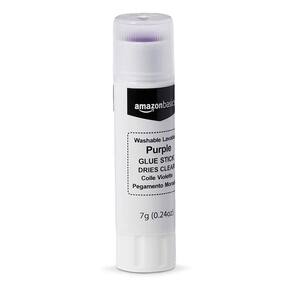 Bastões de cola escolar laváveis roxos Amazon Basics, secam e transparentes, bastão de 0,24 onças, pacote com 30