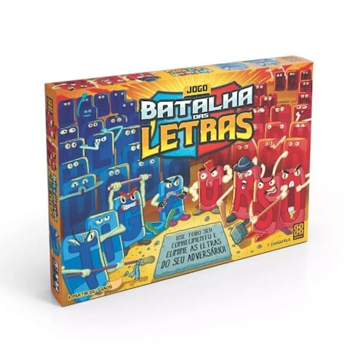 Batalha das Letras - Grow. Use todo seu conhecimento e elimine as letras do seu adversário. Um tema é escolhido, como FRUTAS, CARROS, FLORES, CORES, etc. Então a criança lança o dado, para sortear uma letra. Em seguida, fala uma palavra do tema escolhido iniciada pela letra sorteada. Por exemplo: o tema escolhido é FRUTA, e a letra sorteada é M. Neste caso, a criança pode falar MORANGO. A partir daí, as letras M, O, R, A, N e G do suporte adversário devem ser retiradas. Segurança Inmetro - CE - BRI/CEPEX-N 01024-25 NBR NM 300/2004 - Segurança de Brinquedos - Fundação Abrinq - Empresa Amiga da Criança, - Atenção Não recomendável para menos de 03 anos.