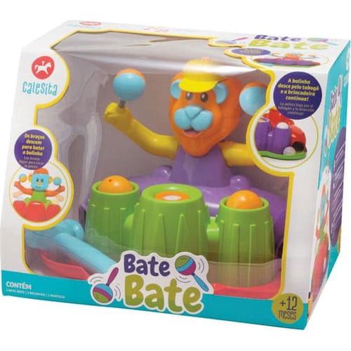 O adorável bate bate Calesita, torna a brincadeira das crianças mais divertidas e emocionantes. O brinquedo vem com 02 bolinhas e um martelinho, enquanto o animalzinho bate a bolinha, ela escorrega e passa pelo tuogã, e a brincadeira só continua.