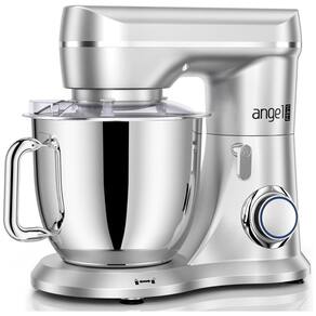 Batedeira 4,7L com 10 Velocidades, Tigela de Aço Inoxidável e Acessórios, 110V 380W, Mini Angel, Prata