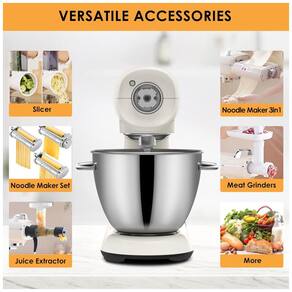 Esta batedeira elétrica Zacme é feita com engrenagens de metal e corpo de fundição sob pressão de alumínio, o que a torna mais durável e confiável do que misturadores com suporte de plástico. Equipada com sistemas de refrigeração duplos e motores DC, ela não esquenta após uso contínuo por uma hora e apresenta uma temperatura de superfície abaixo de 95 graus. Com 6 designs engenhosos para fácil uso, esta batedeira possui acessórios laváveis, incluindo uma tigela de 5,2 litros, gancho para massa, batedor e batedor feitos de aço inoxidável de qualidade alimentar e uma proteção contra respingos.