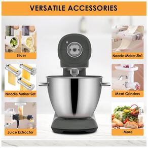 Esta batedeira elétrica Zacme é feita com engrenagens de metal e corpo de fundição sob pressão de alumínio, o que a torna mais durável e confiável do que misturadores com suporte de plástico. Equipada com sistemas de refrigeração duplos e motores DC, ela não esquenta após uso contínuo por uma hora e apresenta uma temperatura de superfície abaixo de 95 graus. Com 6 designs engenhosos para fácil uso, esta batedeira possui acessórios laváveis, incluindo uma tigela de 5,2 litros, gancho para massa, batedor e batedor feitos de aço inoxidável de qualidade alimentar e uma proteção contra respingos.