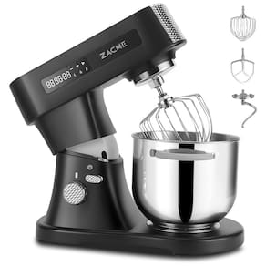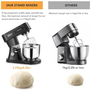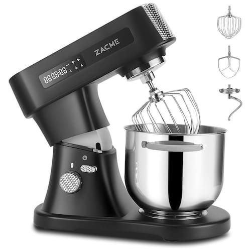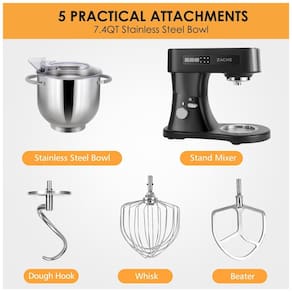 O design de cabeça inclinada com display LED transparente permite definir um tempo de contagem regressiva, permitindo que você faça outras coisas enquanto o liquidificador está funcionando, economizando efetivamente seu tempo. Conjunto de vários acessórios, incluindo gancho de massa de aço inoxidável, batedor de arame, batedor plano e tigela de aço inoxidável com capacidade de 7 litros. Todas as alturas são ajustáveis para lidar com grandes quantidades pequenas.