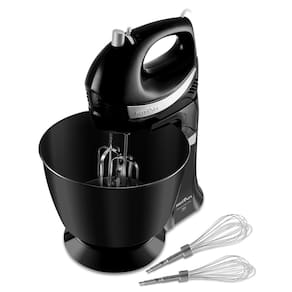 • 4 velocidades + Turbo; • 1 tigela plástica de 4,3 litros; • Unidade motora possui apoios na parte traseira (para utilização fora da base, em posição “descanso”) e pode ser usada como portátil; • Botão ejetor dos batedores; • 01 par de batedores para massas leves; • 01 par de batedores em aço inox para claras em neve • Potência de 550W