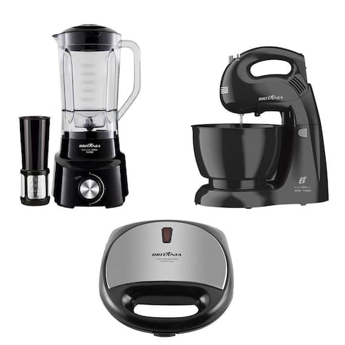 Batedeira Britânia Perola 550 Neve, Liquidificador Diamante 800 e Grill Crome, 220 Volts