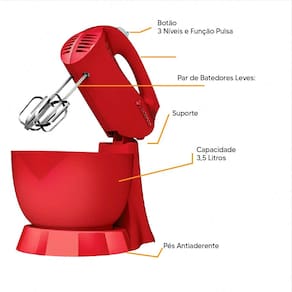 Batedeira Compacta Cadence Jolie Vermelha 3 Velocidades – Portátil e Fixa