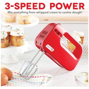 Batedeira de Mão com 3 Velocidades e Acessórios, Aço Inoxidável, 150W, 110v, DASH DSHM155GBRD04, Vermelho