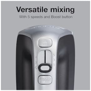 MISTURA PODEROSA E SEM ESFORÇO O potente motor DC desta batedeira elétrica é construído para durar e fornece velocidade e torque mais consistentes para lidar com ingredientes pesados, como massa de biscoito grossa. No entanto, ele funciona mais silencioso para uma experiência de mixagem portátil mais agradável. VERSÁTIL COM 5 VELOCIDADES E IMPULSO. Este versátil misturador elétrico tem 5 opções de velocidade diferentes, além de Boost para aqueles momentos em que você precisa de energia extra. PROJETADO PARA DURAR E FUNCIONAR MUITO A batedeira combina durabilidade e um design atemporal com potência e desempenho excepcional. É feito de materiais duráveis e de alta qualidade para anos de mistura sem esforço. É apoiado por uma garantia limitada de 3 anos. REDUZA OS RESPINGOS A batedeira manual tem uma primeira velocidade mais lenta que lhe dá mais controle e ajuda a manter os ingredientes na tigela ao misturar. É perfeito para misturar ingredientes secos como farinha ou combinar líquidos. MISTURE COM MAIS EFICIÊNCIA O mixer vem com batedores de arame trançado que são projetados para misturar mais rápido e entupir menos, para melhor eficiência de mistura. Os batedores são feitos de aço inoxidável e podem ser lavados na máquina de lavar louça