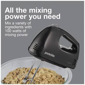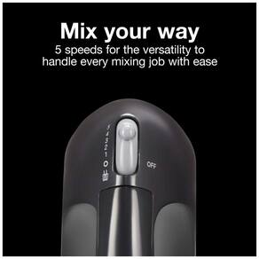 Este misturador de mão elétrico tem 5 velocidades para a versatilidade de lidar com todos os trabalhos de mistura com facilidade, quer você queira misturar, mexer, bater ou chicotear. Para alterar as velocidades, basta girar o dial. TODA A FORÇA DE MISTURA QUE VOCÊ PRECISA Com 100 watts de potência de mistura, a batedeira elétrica tem toda a potência que você precisa para misturar uma variedade de ingredientes, seja preparando massa de biscoito ou adicionando ingredientes secos como farinha e nozes a uma massa grossa. FÁCIL DE MANTER E ZENAR A batedeira elétrica tem um design leve e compacto que facilita o manuseio durante a mistura e ocupa menos espaço ao zenar. FÁCIL DE LIMPAR O misturador é fácil de limpar e vem com 2 batedores planos de aço inoxidável com ejeção do batedor. Eles são laváveis para facilitar a limpeza. RECURSO ÚNICO DE DESCANSO DE BACIA. Estabiliza convenientemente a batedeira na borda da tigela quando a batedeira não está em uso, para liberar suas mãos