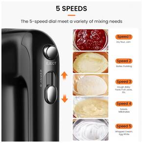 Controle com uma mão e design do suporte Um clique para remover acessórios, basta deslizar o polegar para ajustar a velocidade. Evite o design de despejo, coloque o mixer de mão verticalmente na mesa quando não estiver em uso para evitar sujeira e bagunça Motor poderoso e resfriamento rápido A mais nova atualização do motor de cobre puro, difere do alumínio revestido de cobre no . Ventilador embutido e design multi furos para resfriamento rápido para maior vida útil Configuração de 5 velocidades Esta batedeira elétrica portátil possui 5 velocidades para uma ampla variedade de necessidades de mistura de alimentos. Ligar o liquidificador em uma velocidade lenta evita efetivamente respingos, também misture a massa, ovos, manteiga e creme de forma rápida e fácil Leve e portátil Este mixer portátil é leve, a alça confortável e antiderrapante faz com que suas mãos não se cansem após o uso prolongado. O tamanho compacto economiza mais espaço do que uma batedeira 5 acessórios multifuncionais Inclui 2 ganchos de massa, 2 batedores e 1 batedor, muito fácil de instalar. Tudo feito de material ecologicamente correto de qualidade alimentar, sem ferrugem e descasca após muito tempo de uso, todos laváveis na máquina de lavar louça, sua boa escolha para cozinhar ou assar na cozinha Marca: Não Informado