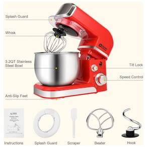 Capacidade de 3,2 L e design de cabeça inclinada Nosso pequeno misturador de cozinha equipado com tigela de aço inoxidável de 3,2 L, adequado para s padeiros, família de 1 a 2 membros ou casais, fácil de operar e limpar. O misturador de design de cabeça inclinada permite acesso para instalar ou desinstale a tigela e os acessórios facilmente. E a tampa anti respingo transparente pode evitar que o ingrediente faça uma bagunça. 6 velocidades e 4 ventosas antiderrapantes este mini mixer tem 6 opções de velocidade diferentes, adequadas para misturar massa de pão, massas grossas, merengues e chantilly, além de velocidades mais baixas para mexer e refinar suas misturas mais delicadas, pode servir perfeitamente para ingredientes diferentes. Chassi 4 otários mais fortes, pode manter a máquina estável e evitar movimentos ou saltos durante a operação. Acessórios múltiplos atualizados gancho de massa de alumínio e batedor plano, batedor de aço inoxidável são fáceis de prender, usando material atualizado, mais resistente e durável. Há uma junta na junta superior para evitar que resíduos de alimentos espirrem na junta para tornar a limpeza mais conveniente . Excelente presente e suporte A batedeira também é uma excelente ideia de presente para sua família e amigos