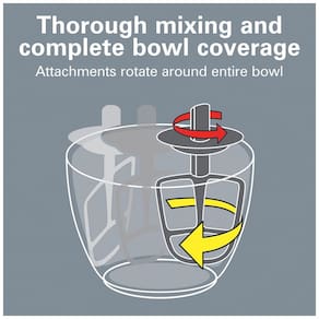 MESMA AÇÃO DE MISTURA QUE OUTRAS MARCAS LÍDERES Não pague centenas de dólares a mais do que o necessário para obter o mesmo desempenho de mixagem. Obtenha a mesma ação de mistura planetária da marca de alto preço e gaste suas economias em ingredientes sofisticados. MISTURA COMPLETA E COBERTURA COMPLETA DA BACIA. À medida que você mistura, cada acessório gira em torno de toda a tigela à medida que gira na velocidade selecionada. Essa ação de mistura planetária garante que os ingredientes sejam bem misturados e fornece cobertura completa da tigela. PODE ATRAVÉS DA MASSA MAIS GROSSA E MANTÉM A VELOCIDADE CONSTANTE. Não importa quão grossos ou pesados sejam seus ingredientes, o potente motor de 300 watts desta batedeira de cozinha mantém a velocidade constante. FORNECE VERSATILIDADE DE MISTURA GANCHO DE MASSA, BATEDOR E BATEDOR PLANO INCLUÍDO 3 acessórios versáteis permitem que você faça tudo, desde amassar massa de pizza até misturar massa de biscoito e chantilly