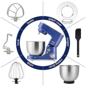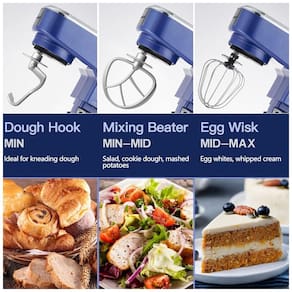 CUSIMAX tem ação de mistura planetária para resultados de mistura mais uniformes. O poderoso motor com 3 velocidades variáveis de agitação lenta a mistura rápida para amassar, misturar, bater, você pode usar este misturador para criar uma variedade de receitas. CAPACIDADE SUFICIENTE A batedeira está equipada com uma tigela de aço inoxidável de 5 litros, fornecendo capacidade suficiente para lotes maiores de cozimento, adequados para sua família. A tigela de aço inoxidável de qualidade alimentar é mais fácil de limpar. O protetor de respingos com porta de acesso ajuda a adicionar ingredientes sem fazer bagunça, deixa você cozinhar com muita facilidade, aproveite para preparar pratos caseiros. ACESSÓRIOS MULTIUSOS A batedeira vem com 4 acessórios diferentes, incluindo gancho de massa, batedor, batedor e espátula de plástico. Quer faça pão, pizza, bolos, bolachas, muffins, saladas, pudins ou outras iguarias, cada um dos acessórios pode ajudá lo. Todos os acessórios são laváveis. FÁCIL DE USAR O misturador de alimentos com design de cabeça inclinada permite que você instale ou desinstale a tigela e os acessórios facilmente, para que você possa limpar convenientemente após o uso. As ventosas de silicone antiderrapantes mantêm o misturador estável