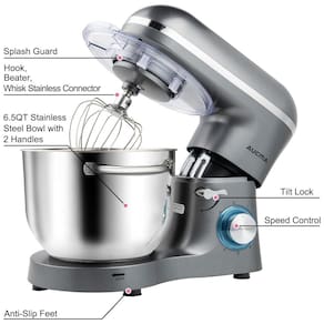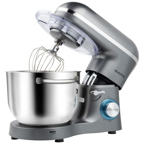 Batedeira Elétrica de Bancada 6.5 Litros 6 Velocidades em Aço Inoxidável, 110V 660W, Aucma, Cinza