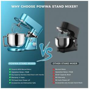 Motor potente de 660W O misturador de suporte elétrico POWWA possui um motor manual 8830 de alta qualidade com consumo de energia de 660W, possui longa vida útil e fornece energia forte para atender à maioria dos seus requisitos para um misturador de cozinha ruído de operação 70dB.
