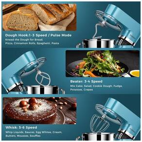 7 modos de velocidade 6 velocidades de mistura contínua baixa a alta e 1 modo de pulso podem garantir uma mistura sob medida sem esforço e completamente para uma variedade de alimentos, como massa, ovo, carne, legumes, pizza, bolo, pão, biscoitos, pastelaria, Muffins, Waffle, Cobertura, Merengue, Purê de Batata e Mais.