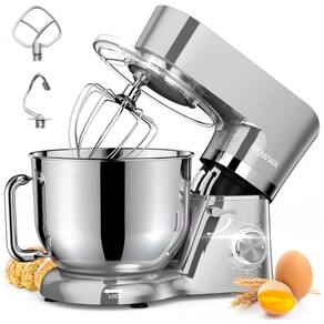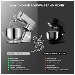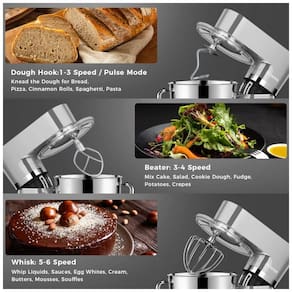Motor potente de 660W O misturador de suporte elétrico POWWA possui um motor manual 8830 de alta qualidade com consumo de energia de 660W, possui longa vida útil e fornece energia forte para atender à maioria dos seus requisitos para um misturador de cozinha ruído de operação 70dB 7 modos de velocidade 6 velocidades de mistura contínua baixa a alta e 1 modo de pulso podem garantir uma mistura sob medida sem esforço e completamente para uma variedade de alimentos, como massa, ovo, carne, legumes, pizza, bolo, pão, biscoitos, pastelaria, Muffins, Waffle, Cobertura, Merengue, Purê de Batata e Mais Tigela de 7,5 LITROS Esta tigela de mistura é feita de aço inoxidável 304 importado que garante a segurança alimentar e a capacidade de 7,5 QT pode satisfazer a maior parte do uso diário de famílias de 3 a 7 pessoas Um protetor de respingos removível adequado com uma grande porta de alimentação ajuda a adicionar ingredientes sem fazer bagunça, permitindo que você cozinhe com grande facilidade, aproveite a preparação de pratos caseiros Multifunções 3 em 1 A batedeira doméstica multifuncional tem um gancho de massa com velocidade de 1 a 3 níveis para massa, um batedor para mexer em velocidade média, um batedor para misturar ovos em alta velocidade e todos os acessórios podem ser lavados na lava louças para Limpeza rápida e fácil