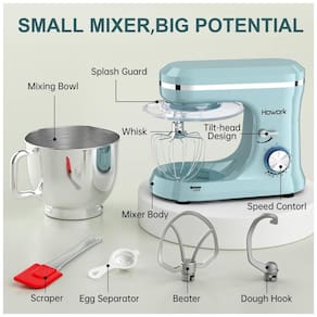 A última batedeira da Howork combina durabilidade e estilo, equipada com um motor de cobre puro de alta performance de 660W e estrutura resistente de ABS. Essa batedeira de cozinha une o clássico e o moderno, atendendo não só às necessidades estéticas, mas também funcionando de forma mais perfeita e eficaz na sua cozinha. A tigela de mistura em aço inoxidável de 6,5Litros com alça fornece capacidade suficiente para suas receitas favoritas, como cookies, pães, bolos e purê de batatas. As 10 velocidades oferecem versatilidade para diversas tarefas, desde misturar massas pesadas até bater claras em neve. O design exclusivo permite fácil acesso à tigela e acessórios, enquanto os 4 pés antiderrapantes mantêm a batedeira estável durante o uso.