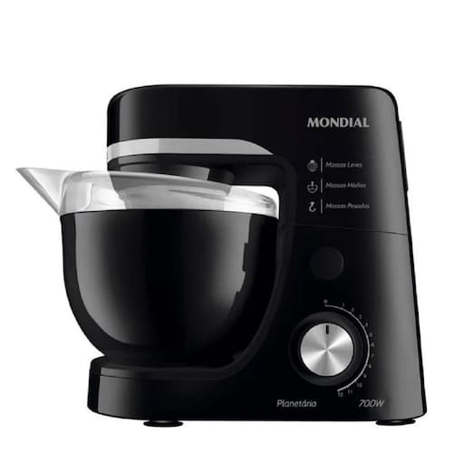 Diferencial do Produto: Potência de 700W: Mais potência para preparar vários tipos de massas, pães, cremes, chantilly e claras em neve. Movimento Planetário: Proporciona maior rapidez e homogeneidade à mistura, além de aumentar o volume da massa. 3 Tipos de Batedores: Permite o preparo de massas leves, médias e pesadas. 12 Velocidades: Possibilita a escolha ideal de velocidade, conforme o tipo de receita a ser preparada. Alta Capacidade: A tigela tem capacidade de 4,5 litros e prepara receitas com grande quantidade de ingredientes. Maior da categoria. Tampa Antirrespingos: Perfeita para adicionar ingredientes durante o preparo, evitando respingos. Sistema de Abertura: Prático no manuseio dos batedores. Pés com Ventosas: Garantem a estabilidade durante os preparos.