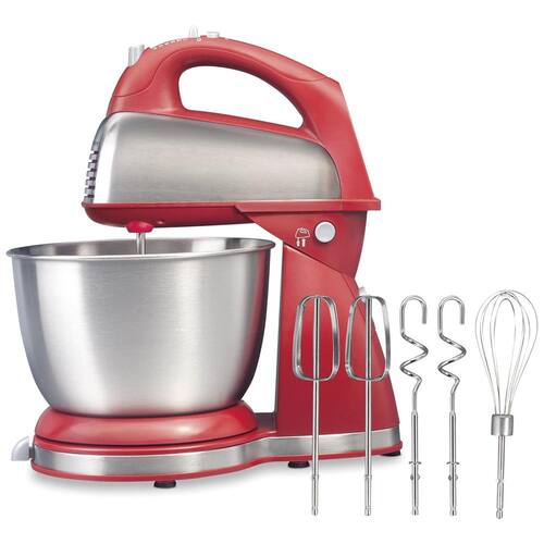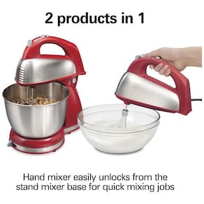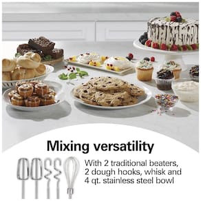 A Batedeira Hamilton Beach Classic Stand Mixer se converte facilmente em uma batedeira portátil. Vem com 5 acessórios, uma tigela de aço inoxidável de 4 litros e 6 velocidades. Enquanto você mistura, a alavanca Shift Stir permite mover a tigela de um lado para o outro para uma mistura completa. 2 PRODUTOS EM 1. Por que ocupar espaço na sua cozinha com 2 batedeiras quando um eletrodoméstico compacto faz tudo? A batedeira de suporte é perfeita para misturas espessas como massa de biscoito e pão, e a batedeira portátil se desencaixa facilmente da base para trabalhos rápidos. 5 ACESSÓRIOS E TIGELA DE 4 LITROS DE AÇO INOXIDÁVEL. O conjunto inclui 2 batedores tradicionais, 2 ganchos para massa e um fouet, e a tigela de 4 litros é grande o suficiente para suas receitas favoritas. Para uma limpeza fácil, os acessórios e a tigela são laváveis na lava-louças. MOTOR POTENTE PARA TODAS AS SUAS NECESSIDADES DE MISTURA. O motor de 290 watts de potência máxima permite que você faça desde misturas de bolo até o amassar de massas espessas e o bater de claras em neve fofas. TIGELA MOVE DE LADO PARA LADO PARA UMA MISTURA COMPLETA. Enquanto você mistura, a alavanca Shift Stir permite mover a tigela de um lado para o outro para uma mistura completa de todos os ingredientes. 6 VELOCIDADES PARA TODAS AS TAREFAS DE MISTURA. Vá desde a dobragem lenta dos ingredientes até o bater na velocidade máxima. Esta batedeira portátil possui 6 velocidades para cobrir todas as tarefas de mistura e um botão Quick Burst para uma explosão extra de potência em qualquer velocidade.