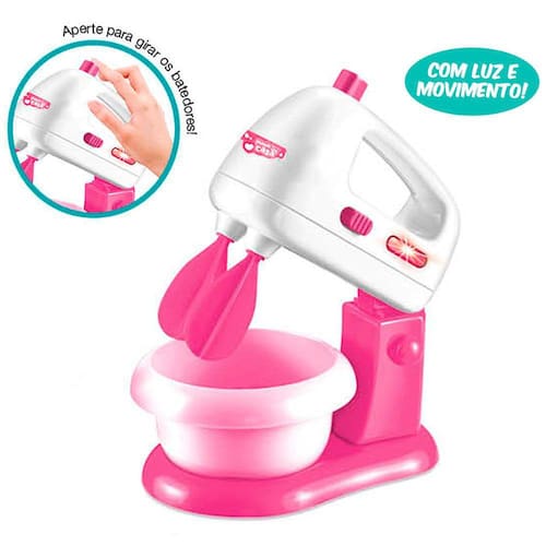 Batedeira Infantil - Mania de Casa - DM Toys: brincar de casinha vai ficar ainda mais divertido com a linha Mania de Casa! A Batedeira Mania de Casa é um eletrodoméstico de brinquedo ideal para completar o conjunto de cozinha infantil das crianças. Essa batedeira de brinquedo à pilha é igual a de verdade. Para brincar é muito fácil: basta muda a posição da parte superior da batedeira e ligar utilizando o botão lateral ou apertando o botão superior. Ela gira os batedores e acende luz! Detalhes: • Batedeira Mania de Casa é um eletrodoméstico de brinquedo ideal para completar a cozinha infantil • Batedeira de brinquedo à pilha é igual a de verdade • Com luz e movimento • Mude a posição da parte superior da batedeira e ligue utilizando o botão lateral ou apertando o botão superior. • Ela gira os batedores e acende luz Informações: • Produto: Mini Batedeira com Luz e Movimento Mania de Casa • Marca: DM Toys • Coleção: Mania de Casa • Tipo: Mini Batedeira Infantil • Categoria: Brincando de Casinha • Subcategoria: Eletrodomésticos Infantis • Tamanho (C x A x L): 16 cm x 19 cm x 14 cm • Conteúdo: 01 Batedeira de brinquedo • Idade recomendada: para crianças a partir de 03 anos de idade Especificações: • Referência: DMT6669 • Código de Barras: 7899205966692 • Embalagem (C x A x L): 20 x 20 x 14 cm • Embalagem (Peso): 0.422 kg • Material / Composição: Plásticos PP, PS e ABS • Alimentação: 02 Pilhas AA - 1.5 V (não inclusas) • Registro: 003 920/2023 • Certificado: Órgãos Autorizados - OCP´S (Organismos de Certificação de Produtos) Aviso: • As imagens são meramente ilustrativas • Os pesos, tamanhos e medidas são aproximados • As cores e estampas dos produtos podem ter variações • As informações são de responsabilidade do fabricante ou fornecedor Ean: 7899205966692